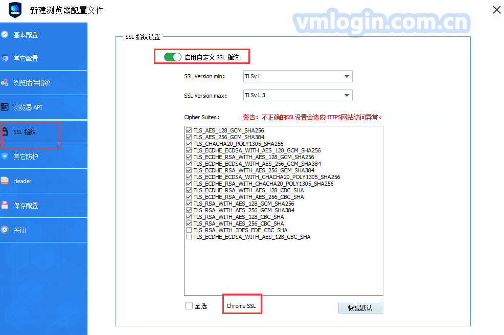 2、SSL指纹如何设置成Chrome官方一致指纹