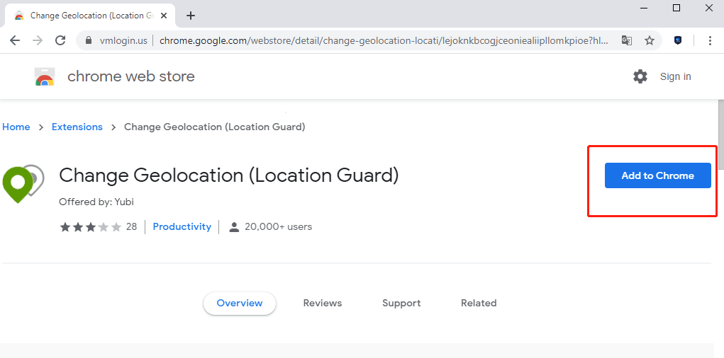 Google应用商店 搜索安装 Change Geolocation,注意的一点就是VMLogin的配置文件里的 User-Agent 要是 Chrome 浏览器类型,不然在线安装插件时会认为浏览器不是 chrome 而无法安装。