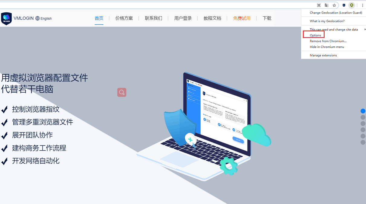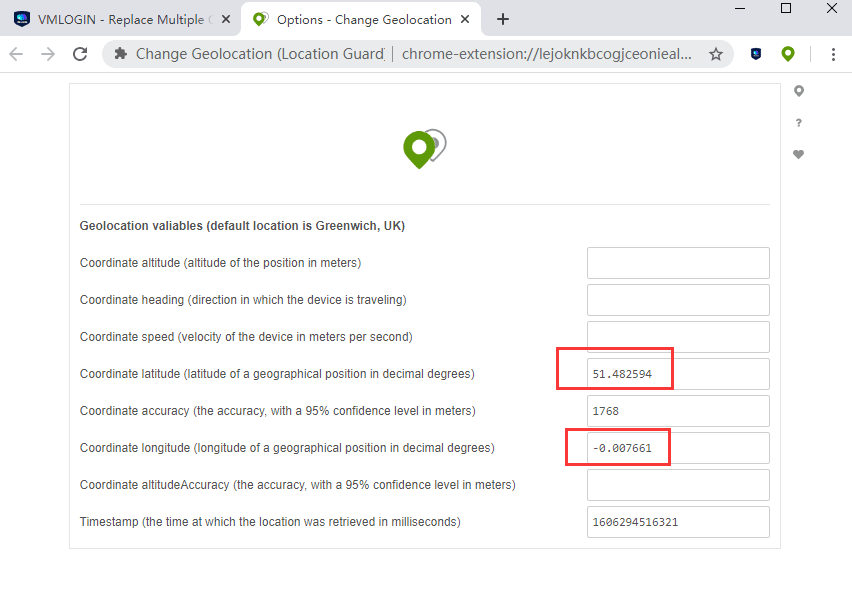 那如何来隐藏 Geolocation 技术的定位呢,我们可以安装一个 Change Geolocation (Location Guard) 扩展插件,来实现定位的自定义。下面我们以VMLogin来演示: