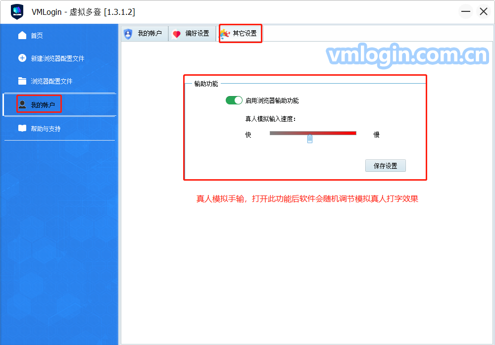 这里的辅助功能为真人模拟输入功能,在网页加载完成可以使用右键菜单,可以粘贴输入模拟真人打字效果。打字的快慢,可以自定义设置。