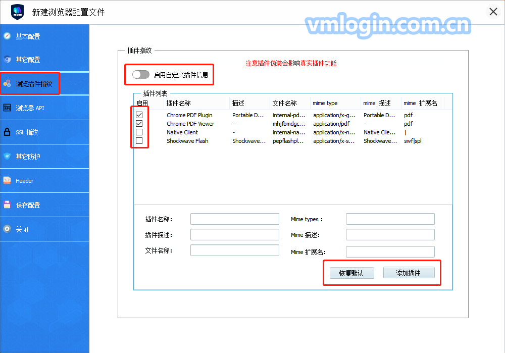 可以根据自己的需求和习惯设置常用的信息,如User-Agent, 分辨率,语言,时区,默认开启首页,插件等,在新建配置文件时,会采用偏好设置里的参数,也可手动修改或随机配置文件。