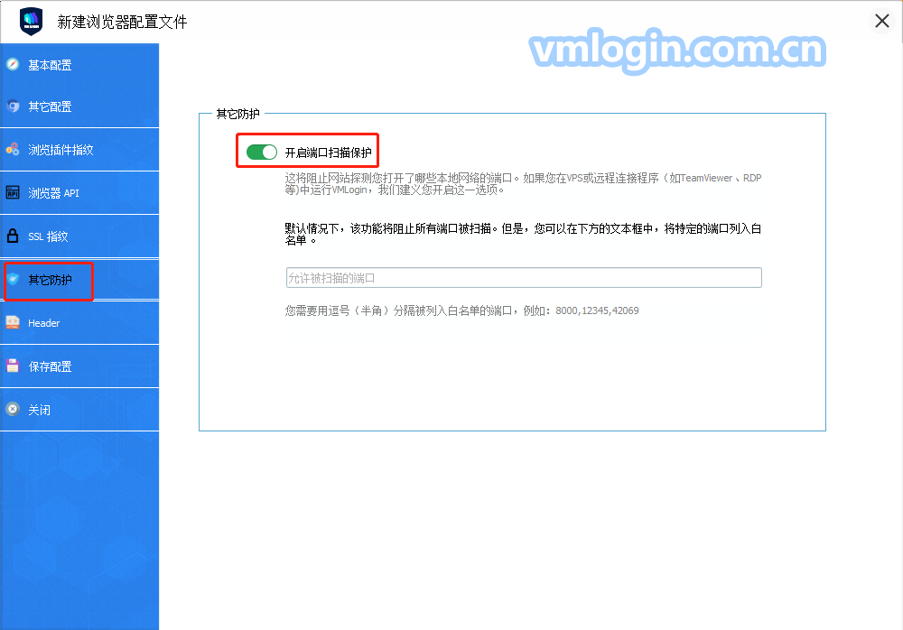 用户可以在浏览器配置文件设置中开启端口扫描保护功能,这将阻止网站探测您打开了哪些端口。该功能将阻止所有端口被扫描。但您也可以将一系列特定的端口列入白名单,供网站扫描。
