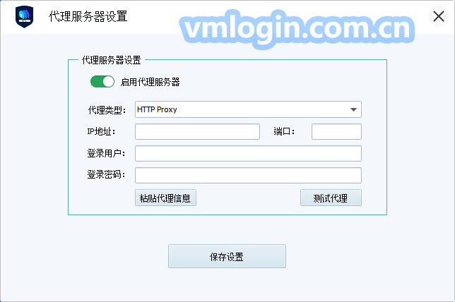 5、打开VMLogin客户端 -> 点击配置文件的“设置代理服务器” -> 启用代理服务器,HTTP和SOCKS5都可以,输入IP,端口,帐号密码,点击测试代理检测是否连接,显示连接成功后点击保存后,可打开浏览器使用。