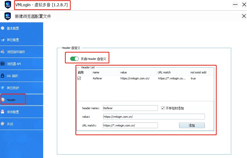 VMLogin 1.2.8.7 客户端版本,添加了 Header 自定义功能,这里做一个简要说明。