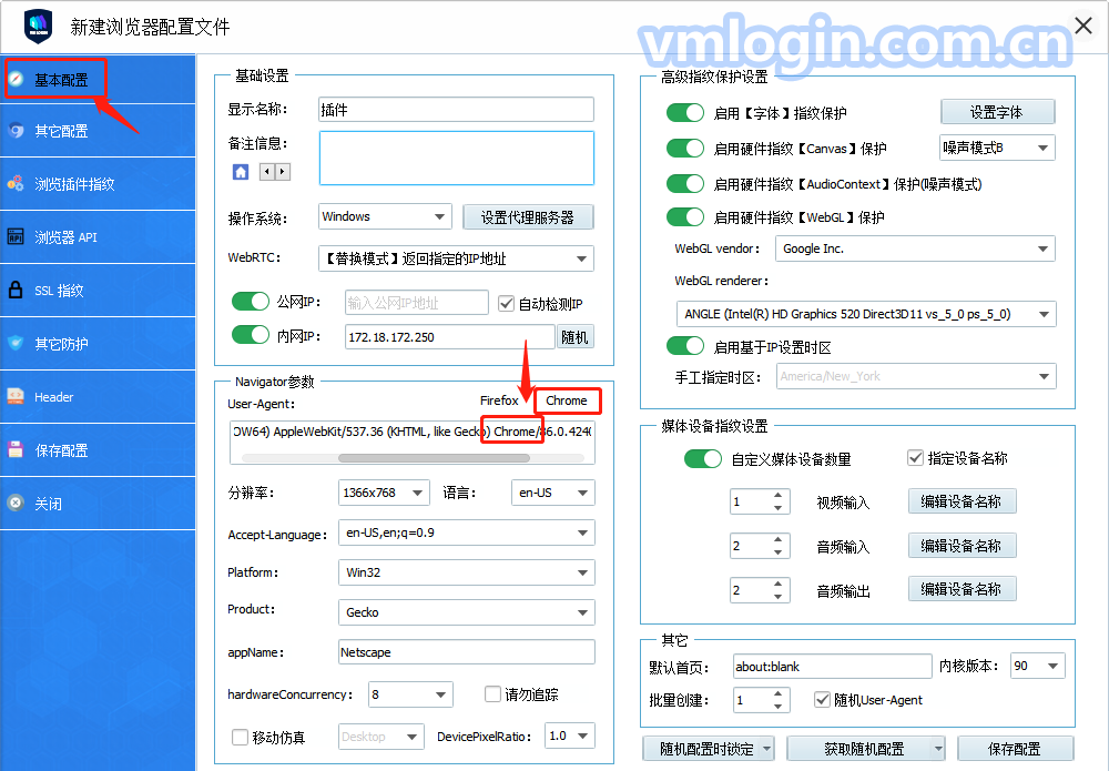 4、新建浏览器配置文件