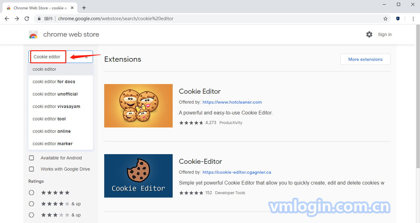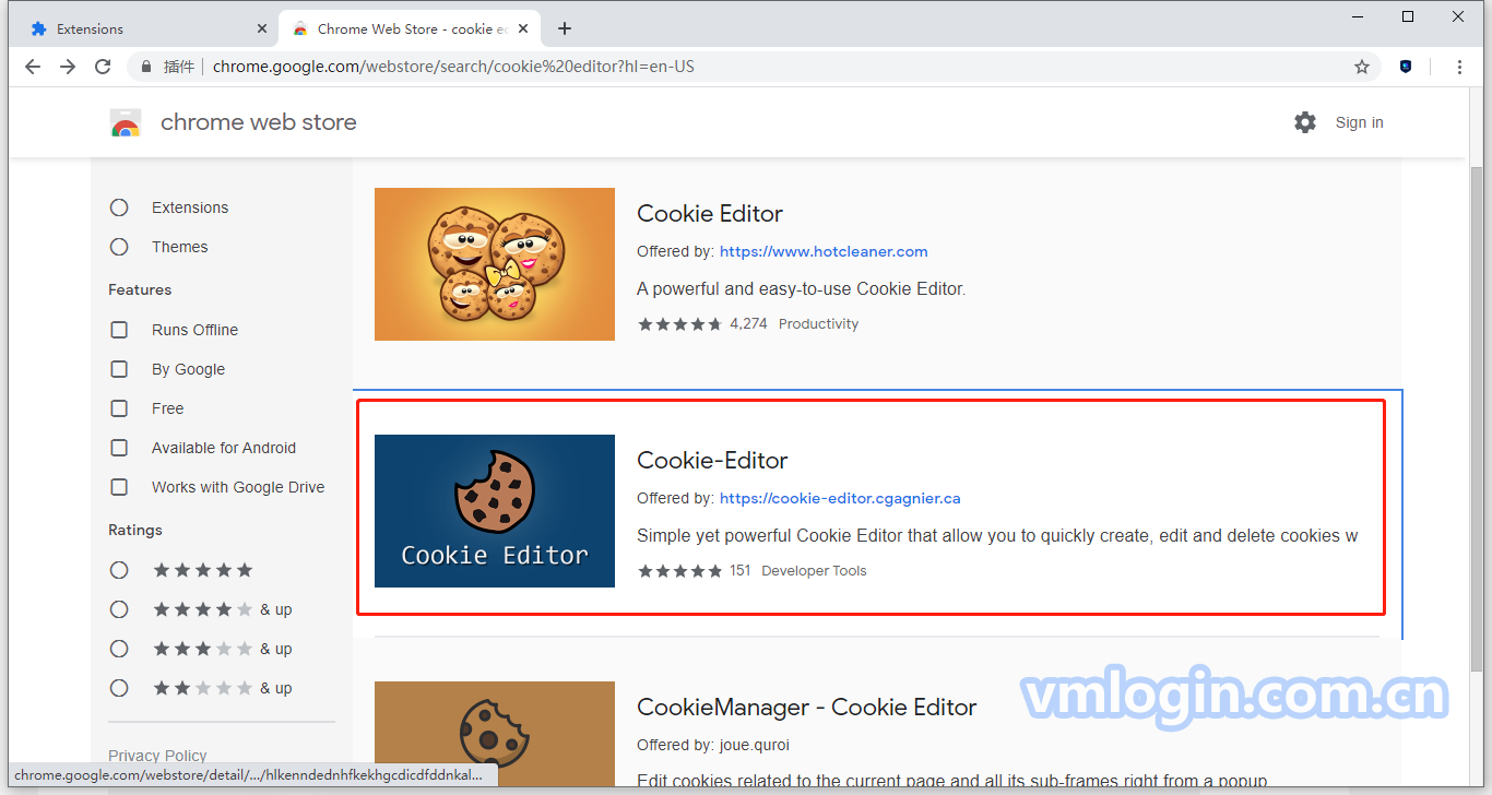 以安装 "Cookie-Editor","Grammarly for Chrome"两个插件为例: