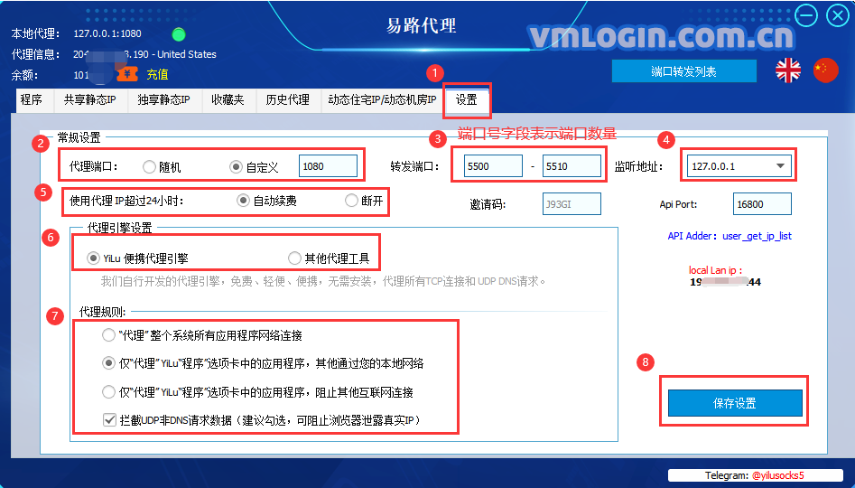 4、易路代理基本设置: