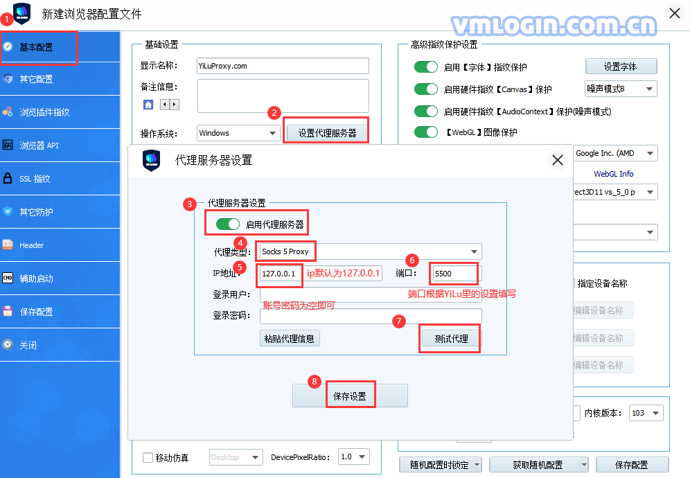 6、VMLogin浏览器设置: