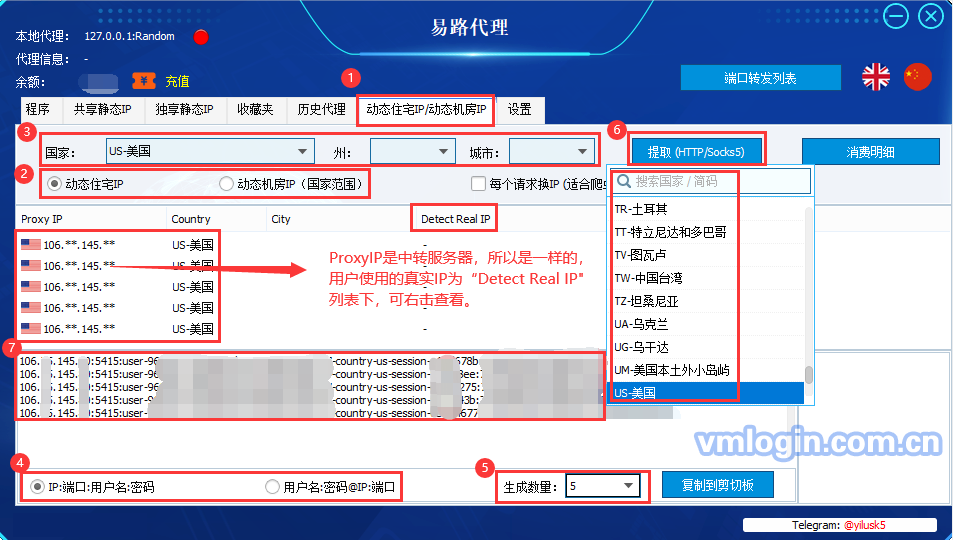 可以点击“复制到剪切板”将IP信息保存本地,批量上传到VMlogin配置文件中;